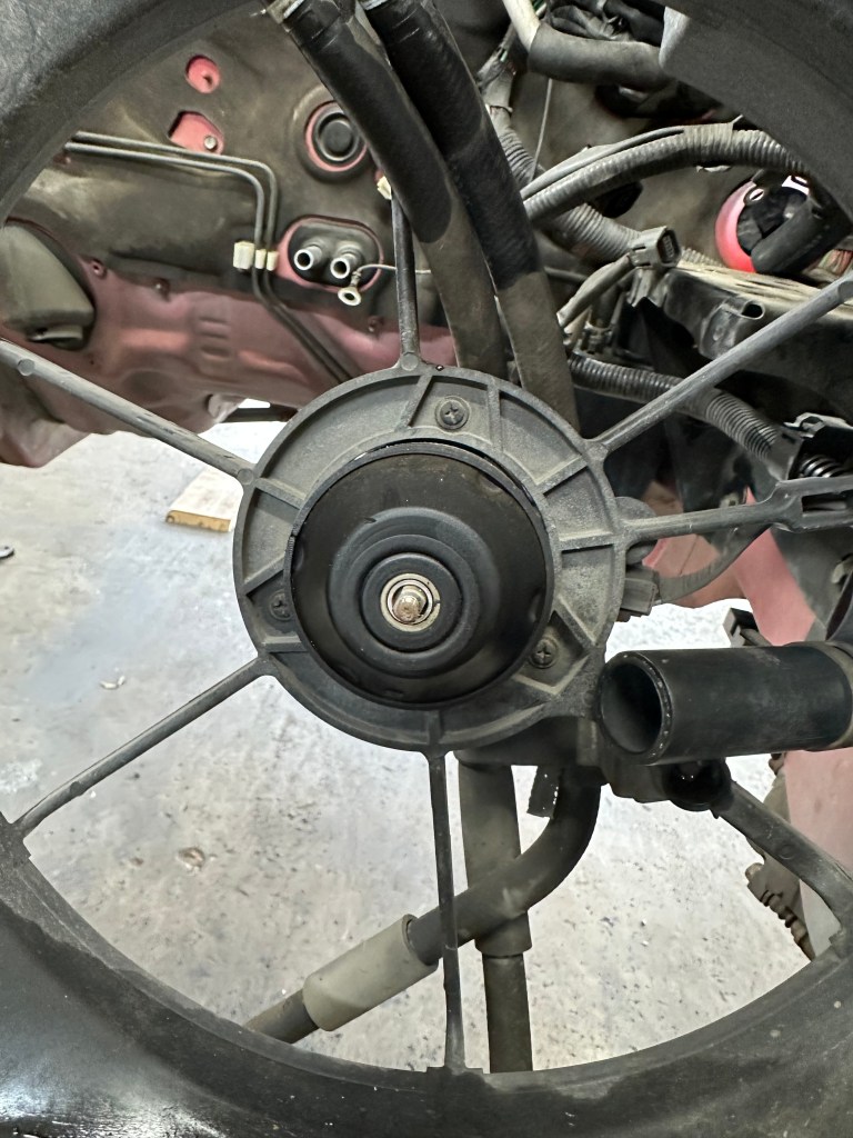 ラジエーター交換をする際はラジエーターの後ろ側にある電動ファンモーターも交換したほうがいいです。たまにラジエータのみ交換されてる方がいらっしゃいますがラジエーターを外さないと交換できないのとファンモーターもよく動かなくなる部品の一つでラジエーターを変えたのにまたはずして交換しなければいけないなんてこともよくあります、、、、