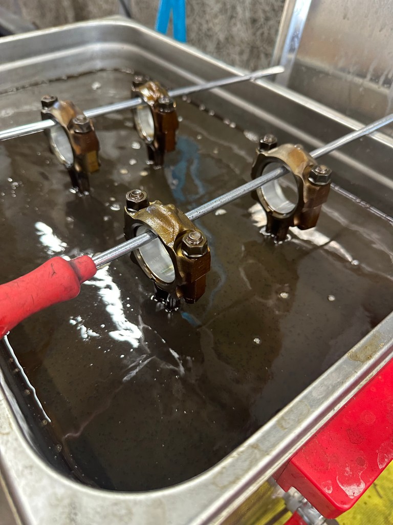 お湯の中に入れて超音波洗浄もしています。大きな傷も入らず固着したカーボンたちを綺麗に落としてくれます。