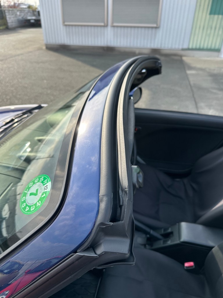 屋根を開けたときに見える部分のウェザーストリップが原因で漏れて助手席の後ろに漏れてきます。