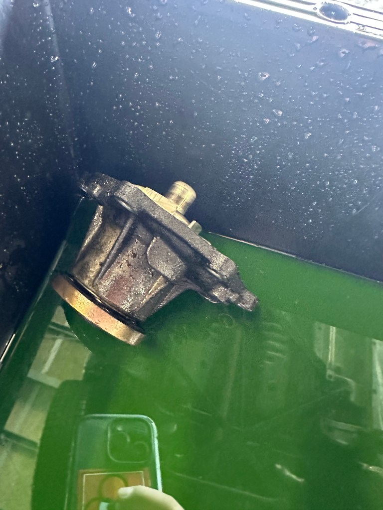 ガスケットがエンジン側に張り付いているのでしっかり清掃をし水漏れをしないようにしています。
